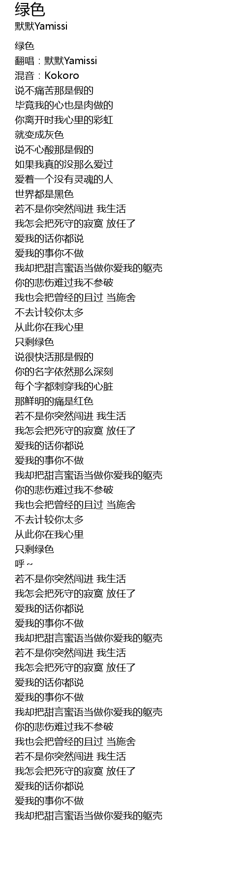 | [01:13.895] | zhǐ shèng lǜ sè |