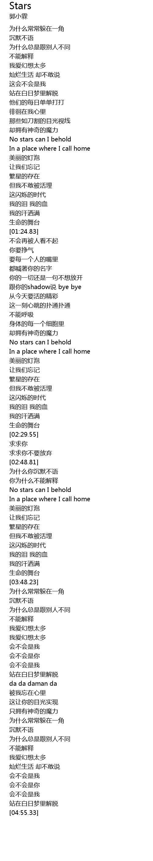 | [03:34.83] | 繁星的存在 |