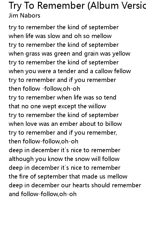 Try To Remember (Album Version) Lyrics
