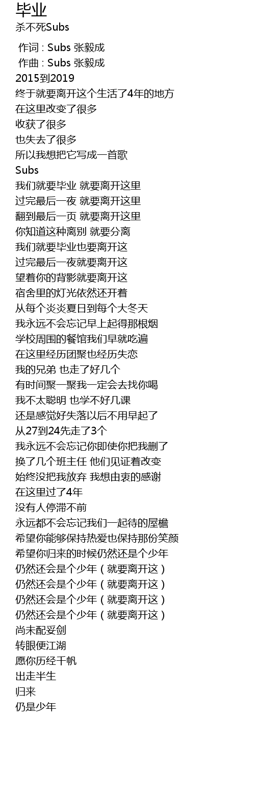 | [00:00.000] | 作词 : Subs 张毅成 |