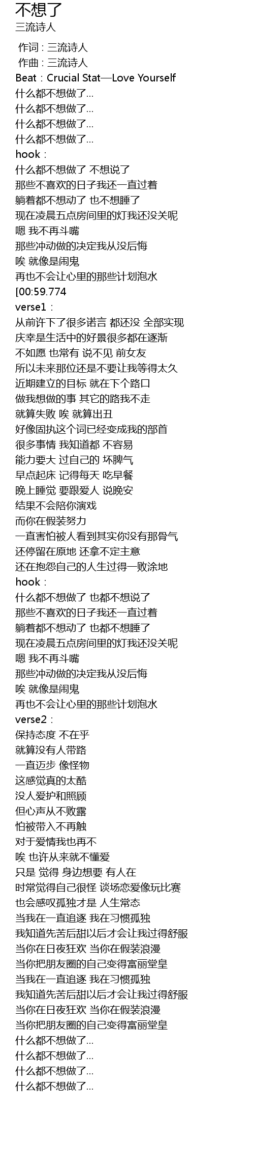 | [03:35.503] | shén me dōu bù xiǎng zuò le... |