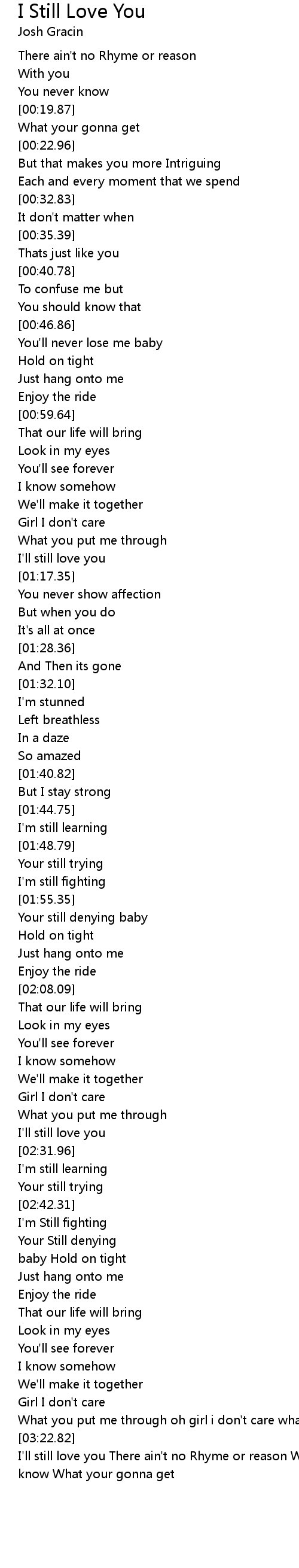 I'll still love you There ain't no Rhyme or reason With you You never know What your gonna get |