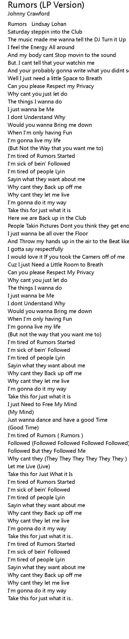 | [02:19.55] | I′m tired of Rumors ( Rumors ) |