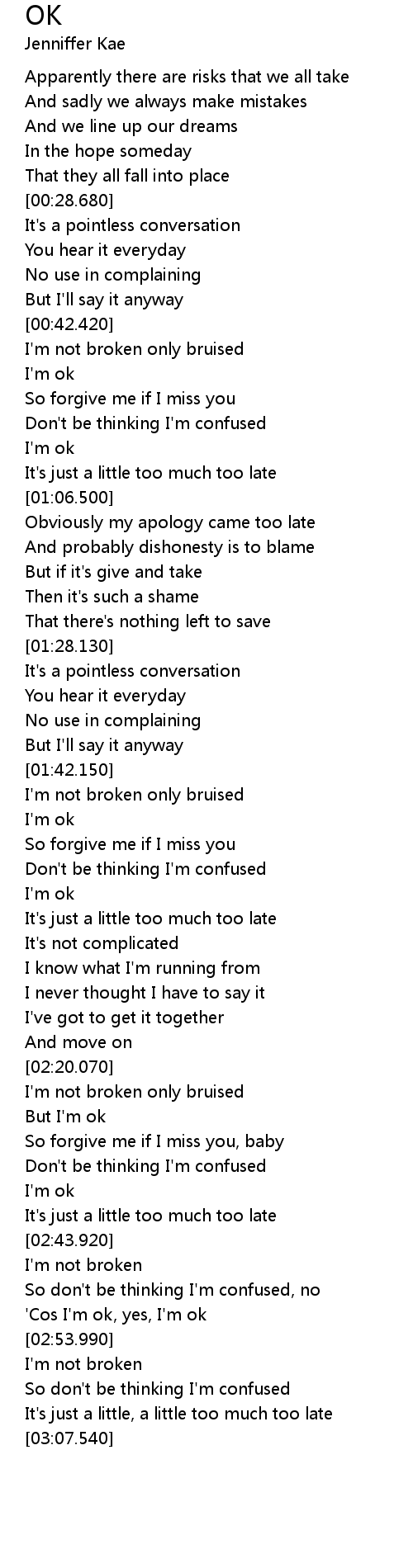 [02:51.500] 'Cos I'm ok, yes, I'm ok