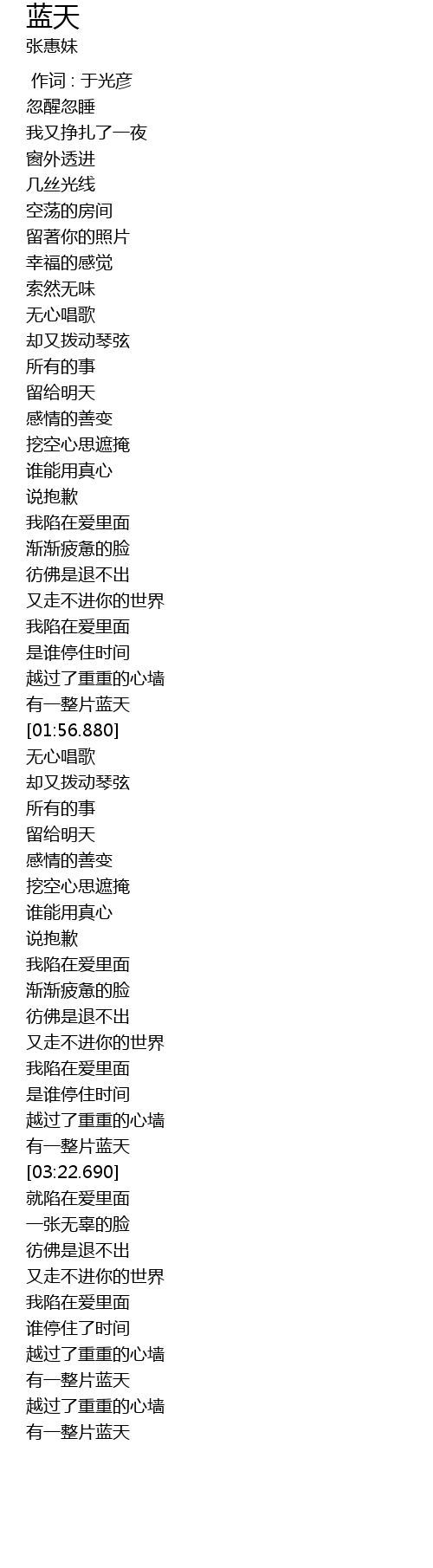 | [01:51.500] | yǒu yī zhěng piàn lán tiān |