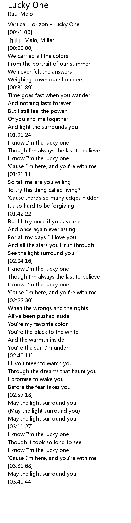 | [03:19.67] | I know I'm the lucky one |