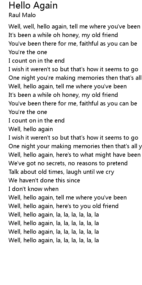 | Well, hello again, la, la, la, la, la, la |