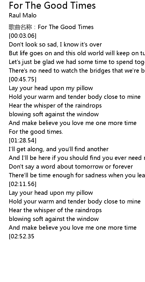 | [00:00.66] | 歌曲名称:For The Good Times |