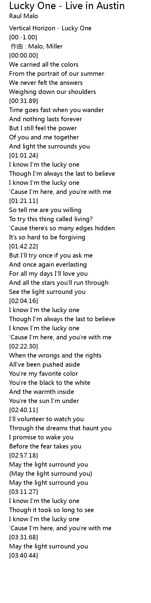 | [00:-2.00] | Vertical Horizon Lucky One |