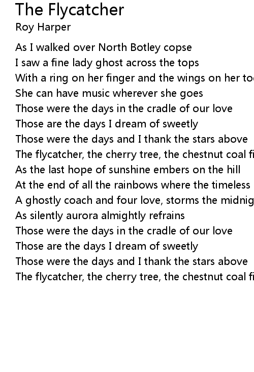 The flycatcher, the cherry tree, the chestnut coal fire sea |