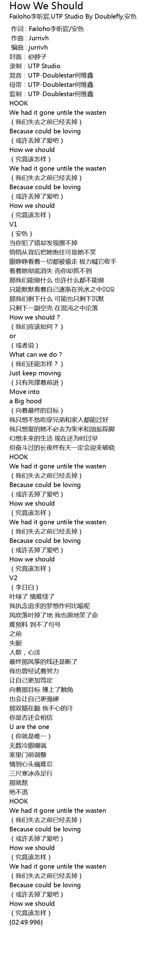 | [00:01.613] | 母带:UTP-Doublestar何维鑫 |