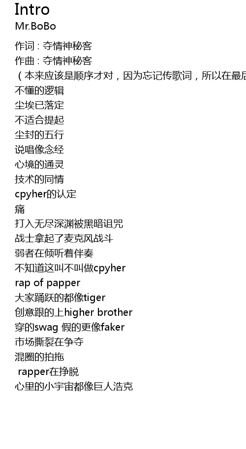 | (本来应该是顺序才对,因为忘记传歌词,所以在最后了) | |