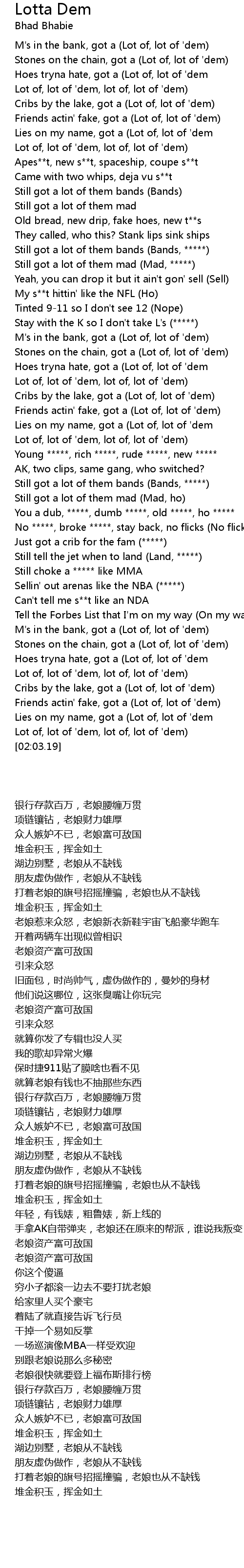 Lot of, lot of 'dem, lot of, lot of 'dem) |
