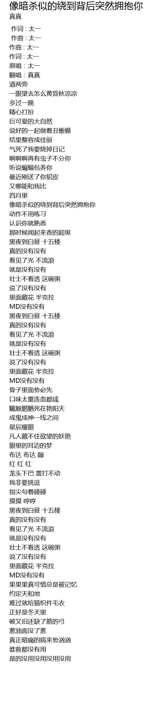| [00:03.136] | 原唱:太一 |