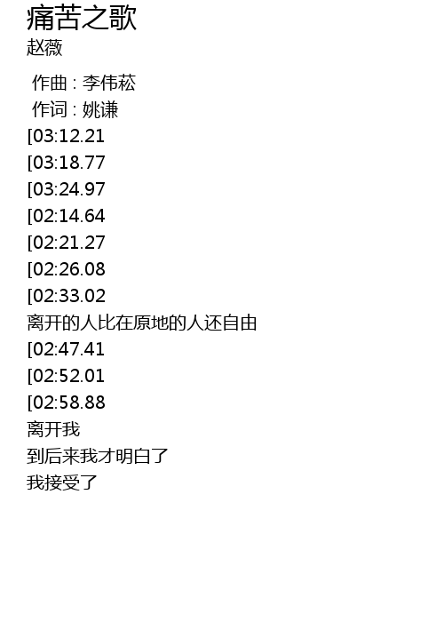 | [01:09.95][02:33.02] | qǐng yuán liàng wǒ lí kāi wǒ gào yī duàn luò |