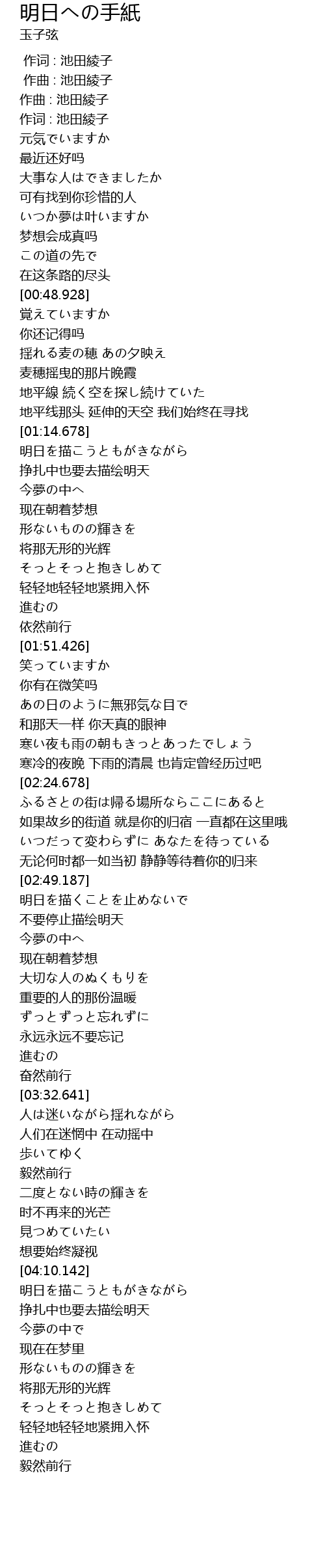 | [00:00.000] | 作词 : 池田綾子 |