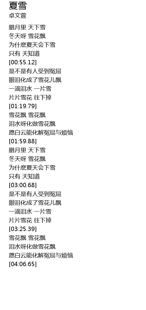 | [01:35.66] | 泪水呀化做雪花飘 |