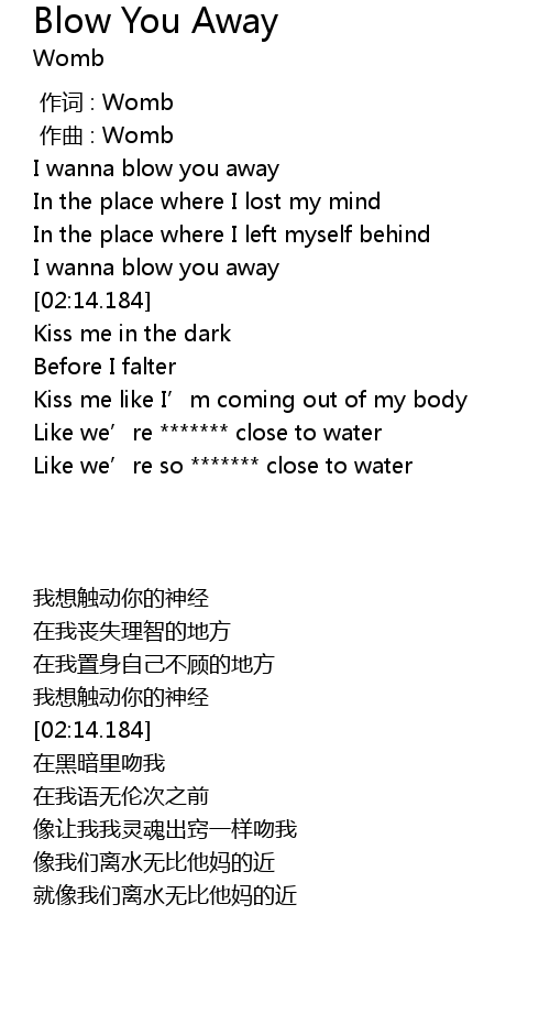 | [02:28.685] | Kiss me like I' m coming out of my body |
