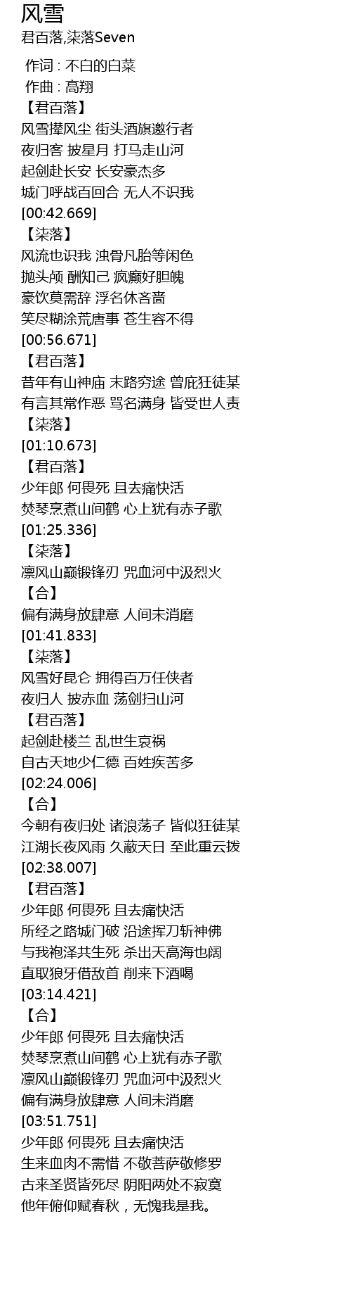 | [02:11.256] | fēng xuě hǎo kūn lún yōng dé bǎi wàn rèn xiá zhě |