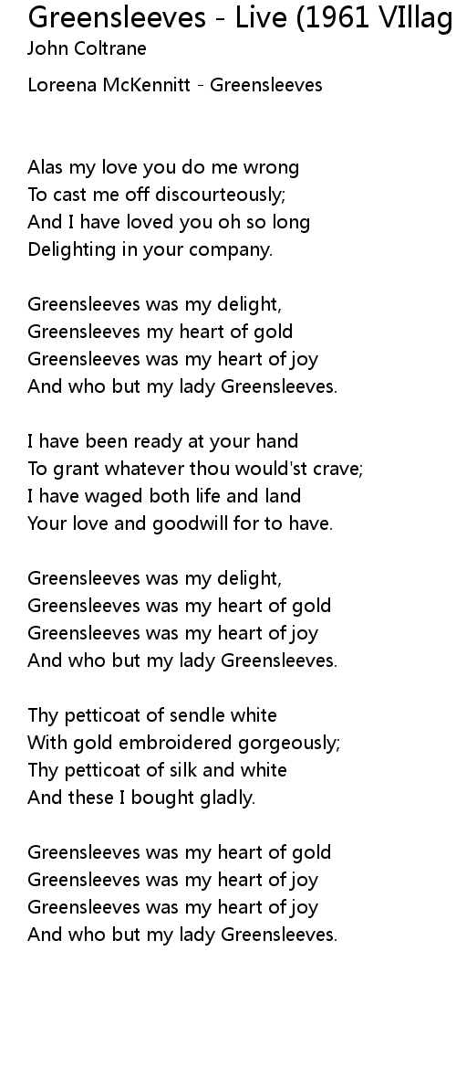 Greensleeves - Live (1961 VIllage Vanguard) Lyrics