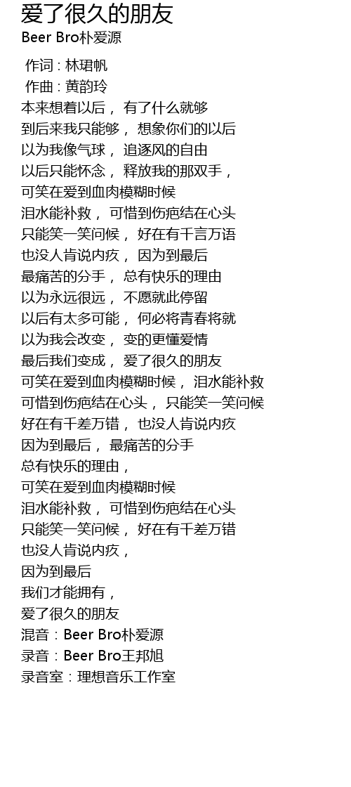 | [04:07.644] | 混音:Beer Bro朴爱源 |