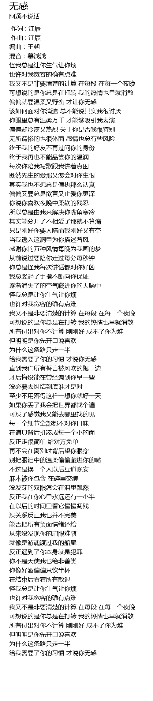 | [01:57.433] | gěi wǒ xū yào le nǐ de xí guàn cái shuō nǐ wú gǎn |
