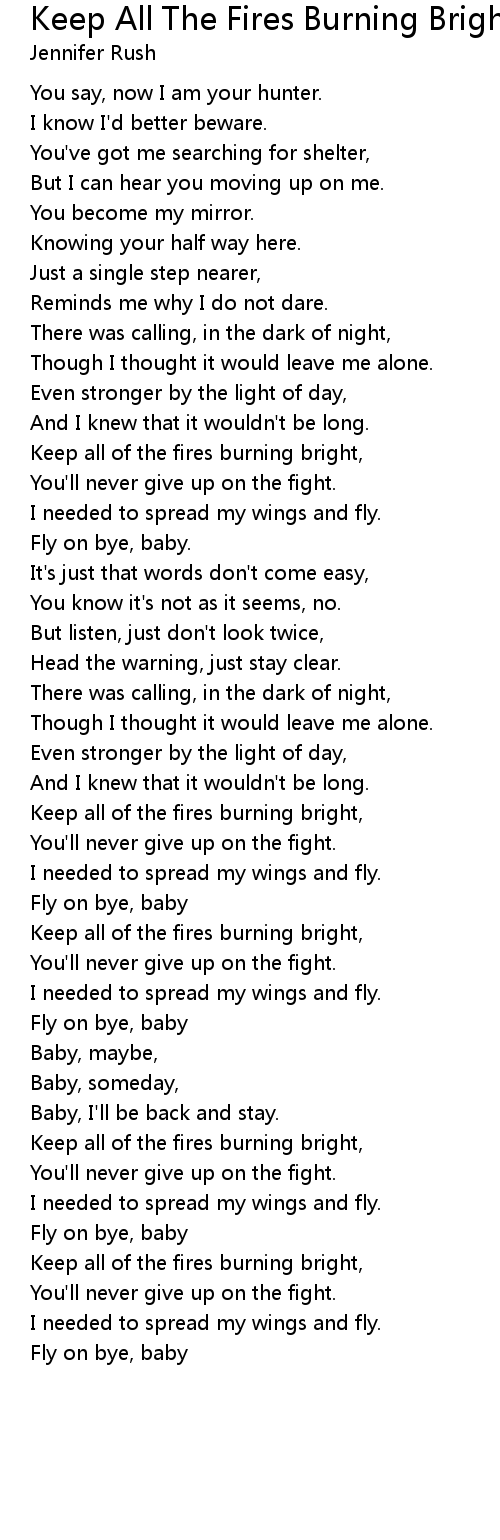 Keep all of the fires burning bright, |
