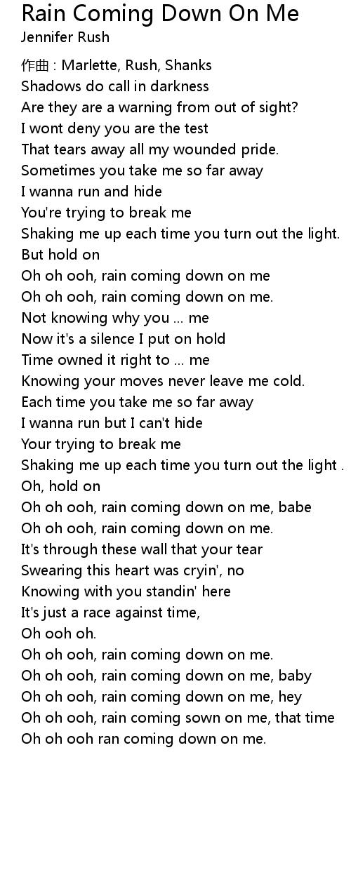 | Oh oh ooh, rain coming sown on me, that time | |