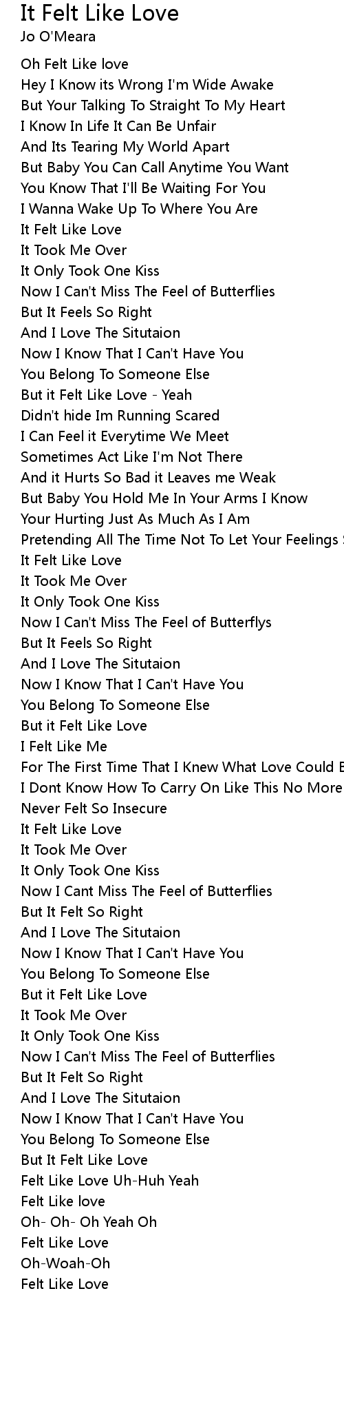 Oh Felt Like love |
