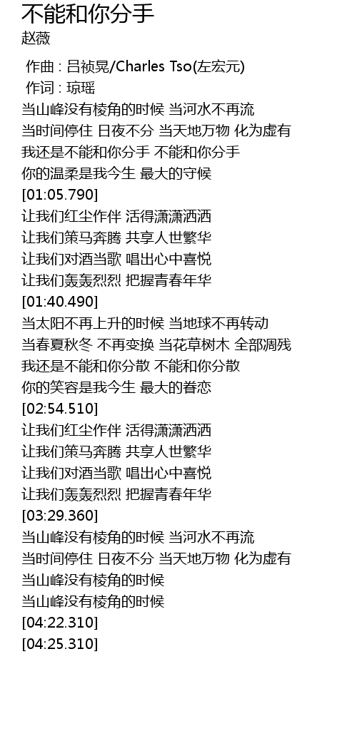 | [00:43.850] | 我还是不能和你分手 不能和你分手 |
