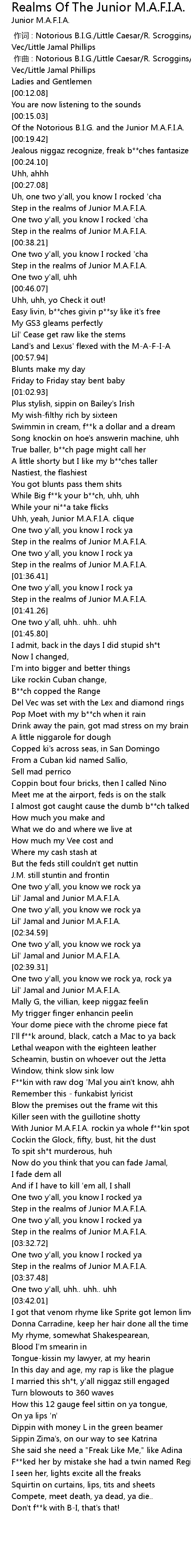 | [00:36.26] | Step in the realms of Junior M.A.F.I.A. |