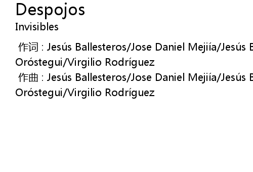 | [00:00.000] | 作词 : Jesús Ballesteros/Jose Daniel Mejiía/Jesús Borja/Brian Oróstegui/Virgilio Rodríguez |