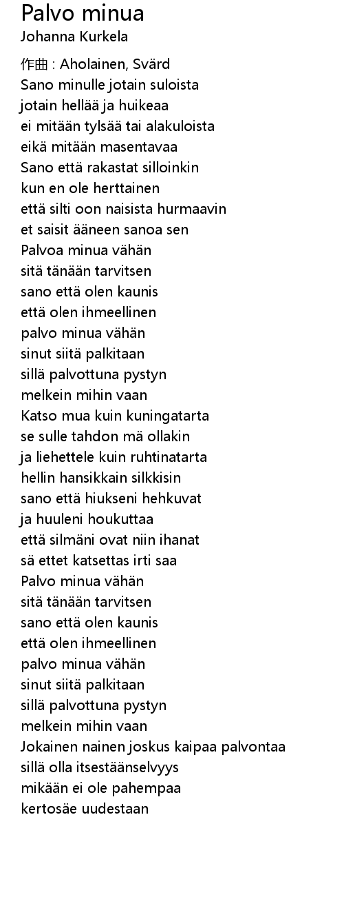| Jokainen nainen joskus kaipaa palvontaa | |