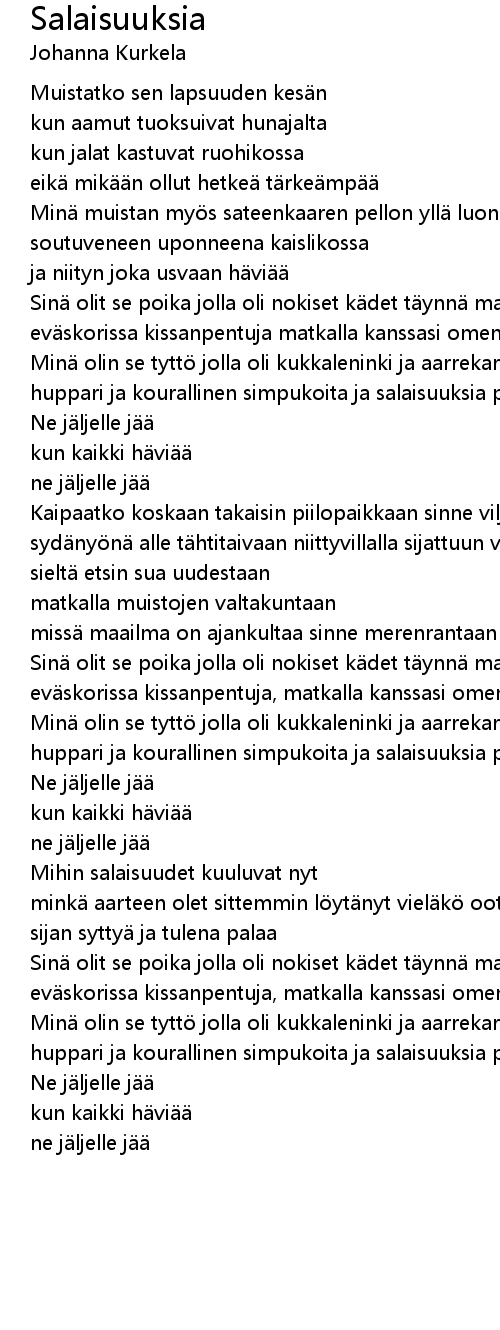 | mink aarteen olet sittemmin l yt nyt viel k oot se jos kipin saa | |