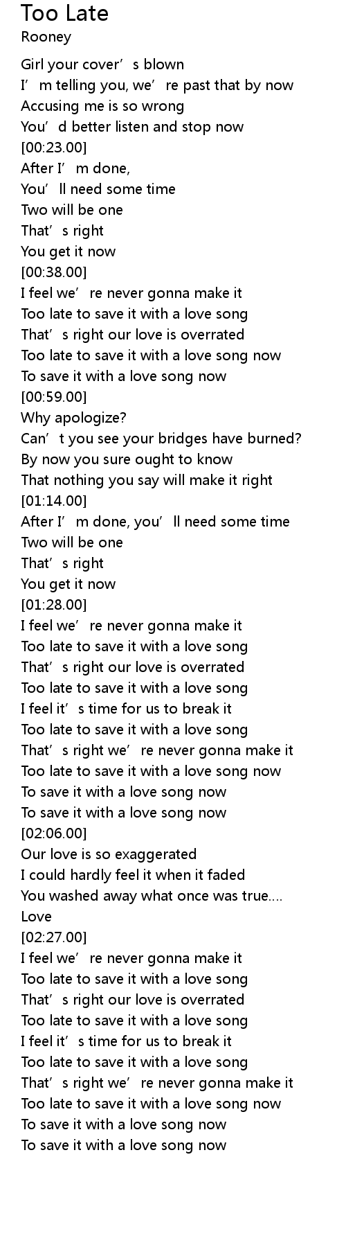 | [00:48.97] | Too late to save it with a love song now |