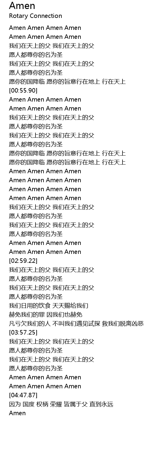| [04:12.07] | 我们在天上的父 我们在天上的父 |