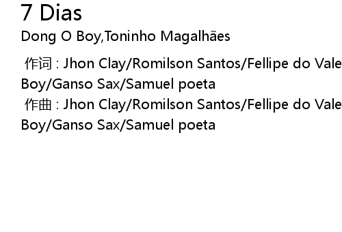 | [00:00.000] | 作曲 : Jhon Clay/Romilson Santos/Fellipe do Vale/Kildson mc/Dong Boy/Ganso Sax/Samuel poeta |