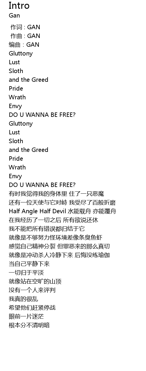 | [00:02.069] | 编曲:GAN |