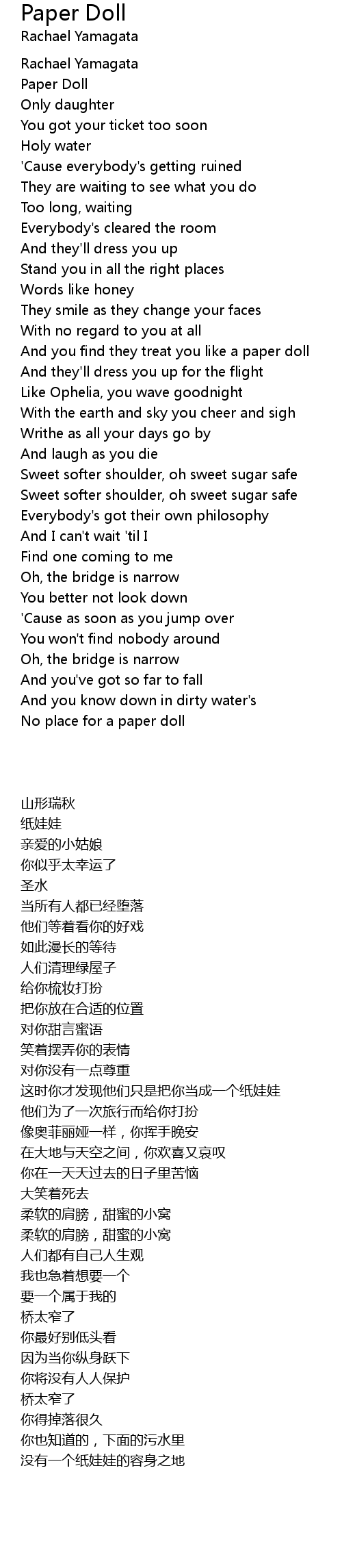 And you find they treat you like a paper doll |