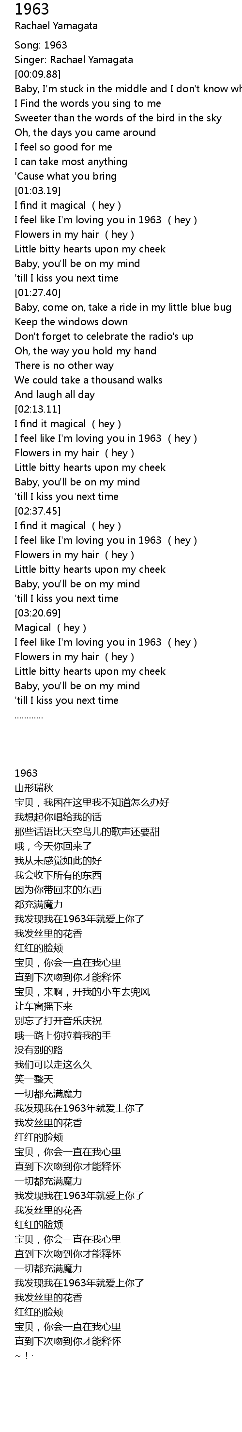 | [03:01.75] | I feel like I'm loving you in 1963 (hey) |
