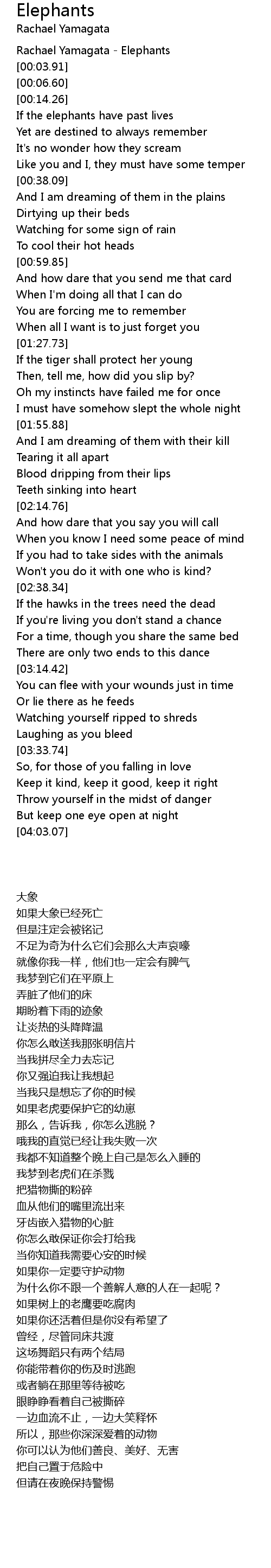 [00:00.54] Rachael Yamagata - Elephants