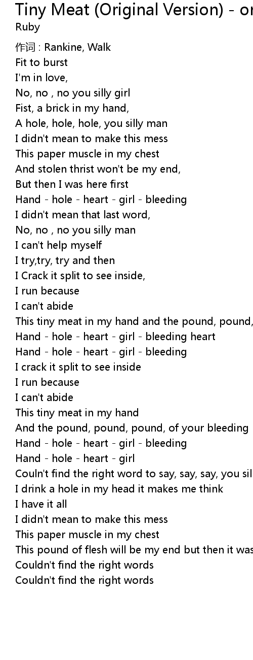 | This tiny meat in my hand and the pound, pound, pound, of your bleeding heart | |