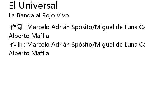 | [00:00.000] | 作曲 : Marcelo Adrián Spósito/Miguel de Luna Campos/Claudio Alberto Maffia |