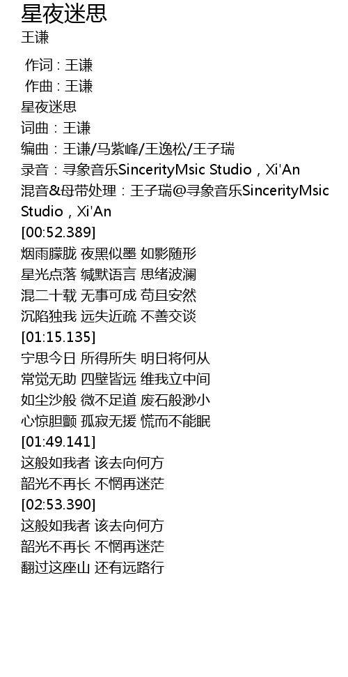 | [00:46.886] | hun yin mu dai chu li: wang zi rui xun xiang yin yue Sincerity sic Studio, Xi' An |