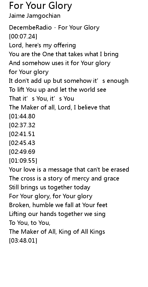 | [01:22.41] | For Your glory, for Your glory |
