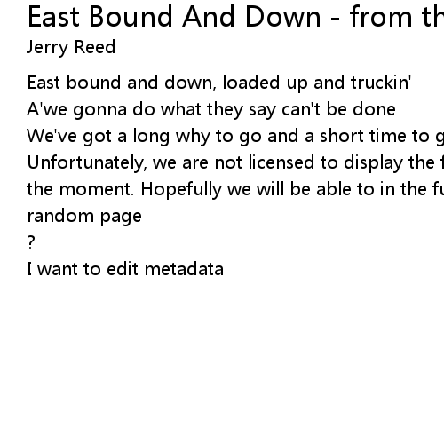 | Song | East Bound And Down - from the Motion Picture "Smokey and the Bandit" |