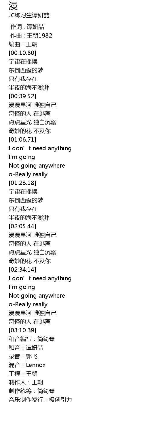 | [03:18.39] | 音乐制作发行:极创引力 |