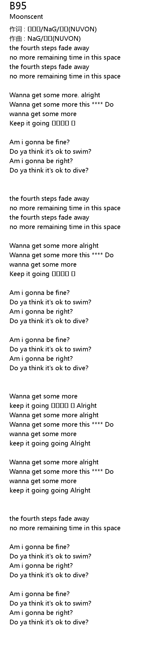 | 作词 : 김봉현/NaG/뉴본(NUVON) | |