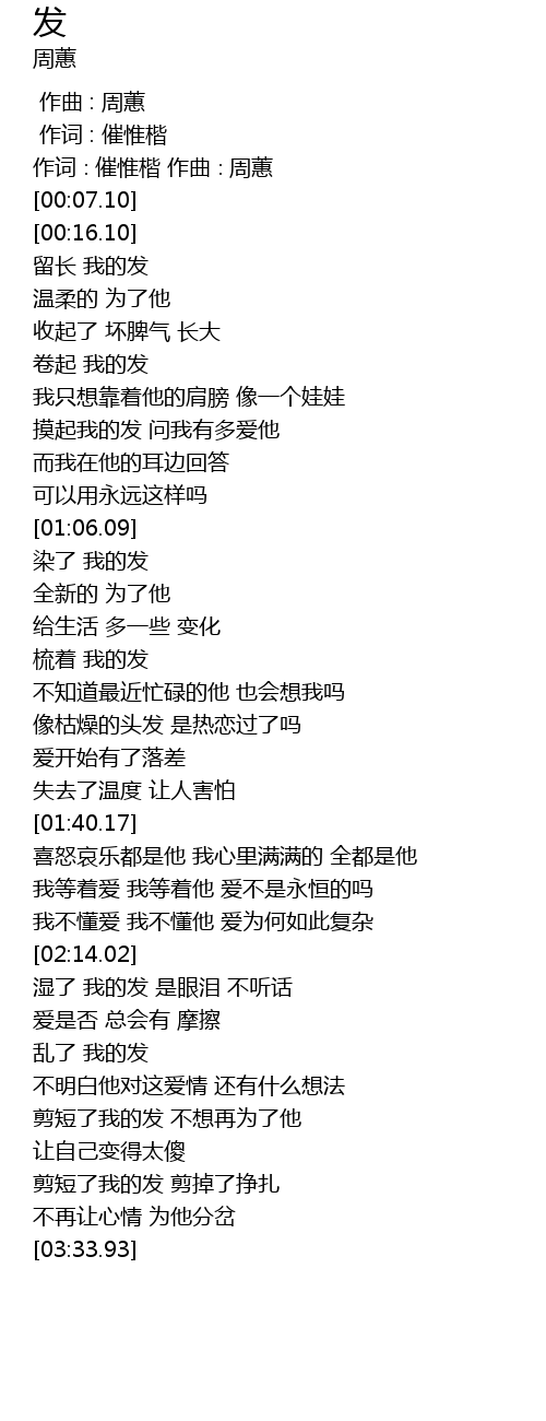 | [00:35.69] | liú zhǎng wǒ de fā |