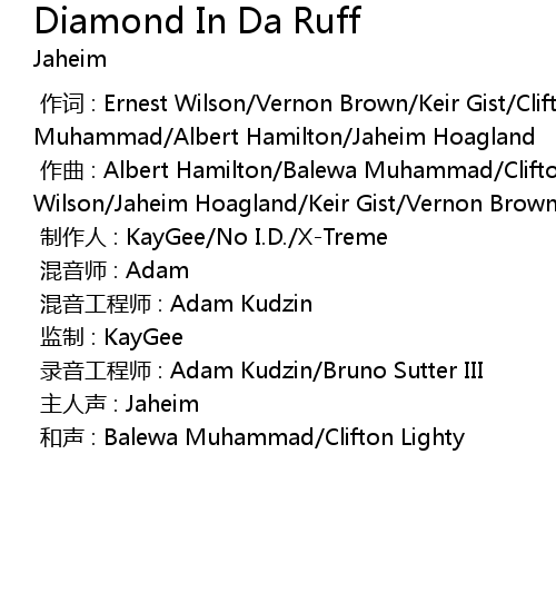 | [00:00.000] | 作曲 : Albert Hamilton/Balewa Muhammad/Clifton Lighty/Ernest Wilson/Jaheim Hoagland/Keir Gist/Vernon Brown |